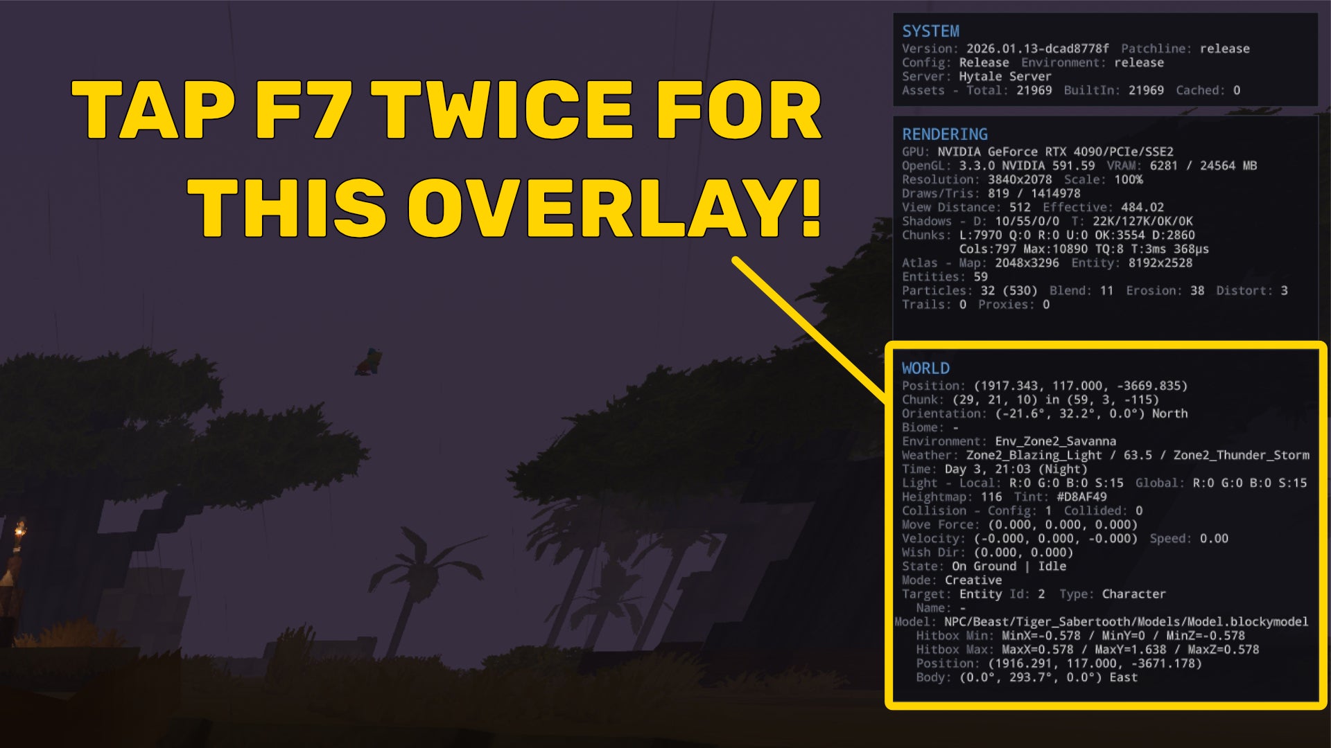 <img loading=“lazy” src=“https://assetsio.gnwcdn.com/hytale-advanced-overlay.jpg?width=2048&height=2048&fit=bounds&quality=85&format=jpg&auto=webp" onerror=“this.onerror=null;this.src=‘https://blogger.googleusercontent.com/img/a/AVvXsEhe7F7TRXHtjiKvHb5vS7DmnxvpHiDyoYyYvm1nHB3Qp2_w3BnM6A2eq4v7FYxCC9bfZt3a9vIMtAYEKUiaDQbHMg-ViyGmRIj39MLp0bGFfgfYw1Dc9q_H-T0wiTm3l0Uq42dETrN9eC8aGJ9_IORZsxST1AcLR7np1koOfcc7tnHa4S8Mwz_xD9d0=s16000';" alt=“A Hytale screenshot showing several debugging overlay panels on the right-hand side of the player’s screen, with the “World” panel highlighted and yellow text superimposed over the screenshot which says “Tap F7 twice for this overlay!”. - 4”>